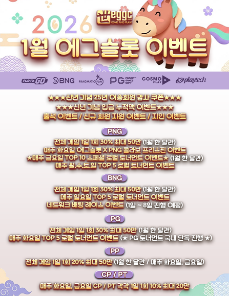 저희 EGGC는 다양한 글로벌 슬롯 제품을 제공하고 있으며, 지속된 업데이트를 통해 더욱 흥미로운 게임을 제공할 것을 약속드립니다.
